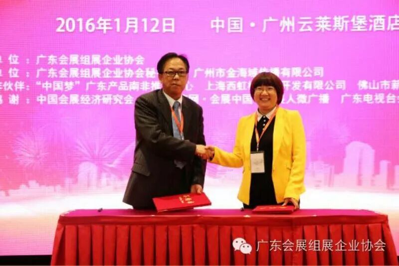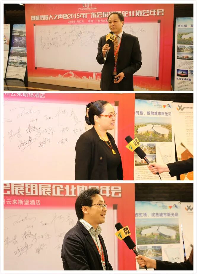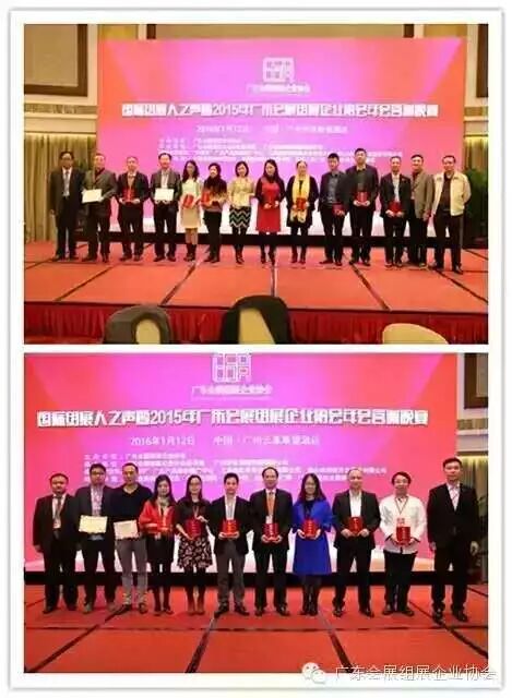 2016年1月12 日,“国际组展人之声暨2015年广东会展组展企业协会年会”在广州云莱斯堡酒店隆重举行。大会共邀请政府有关部门、会展行业协会、会员单位、战略合作伙伴、战略合作服务商、会展院校、媒体等机构代表近300人参加,是广东省会展业规模最大的年度盛会之一。大会得到“中国梦”广东产品南非推广中心、上海西虹桥商务开发有限公司、佛山市新城开发建设有限公司、中国会展经济研究会、中国经济网·会展中国、广东电视台会展频道、会展微广播、广州日报等单位大力支持。